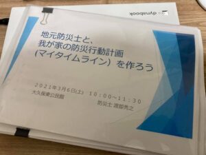 3/6(土)大久保東公民館で防災講座を開催しました。 「地元防災士と我が家の防災行動計画(マイタイムライン)を作ろう」 この地域は2019年の台風19号の接近に伴う豪雨の影響で、深夜の荒川氾濫の避難勧告の件があったので、 […]