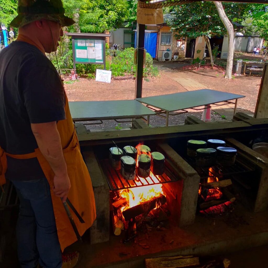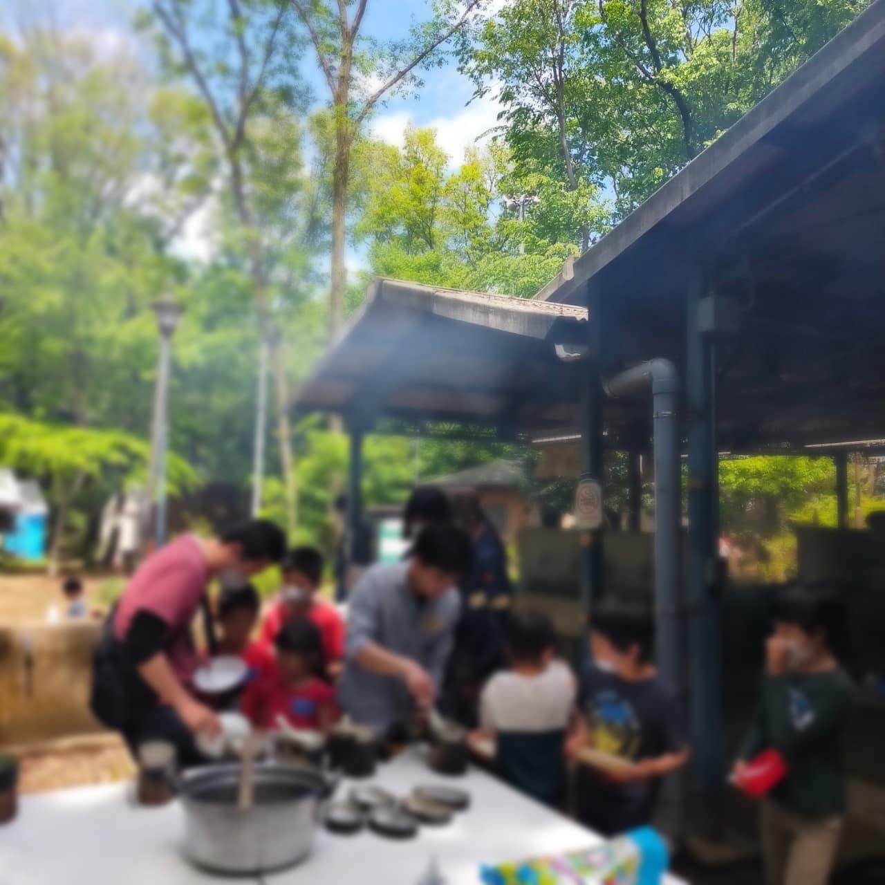カレー作り、野菜切るのに小学生大活躍、飯ごうでの炊飯も上手く行き、食べたら美味しいのなんの。