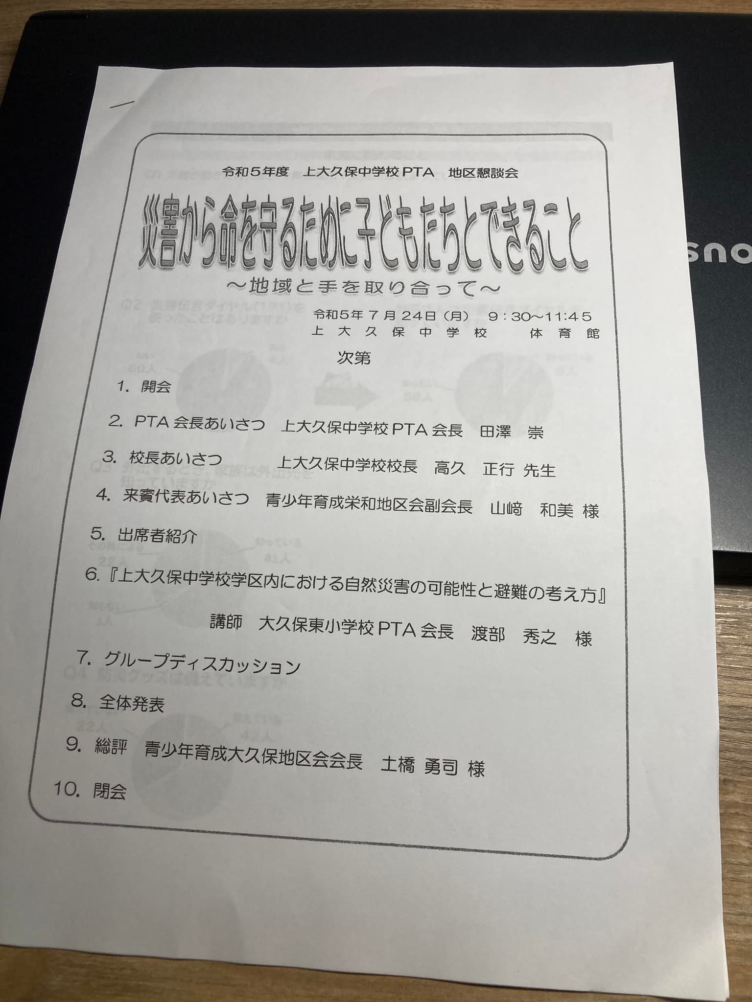 7/24上大久保中学校 地区懇親会防災講座 2023年8月24日 最終更新日時 : 2025年10月12日 ソーシャルグッドネット 渡部 秀之 上大久保中の地区懇談会にて、この地区の防災の話をしてきました。 まずは、正しい知識を持つこと。知識と情報がないと始まらない。 持ち時間30分の予定が、話が止まらない。下手な証拠。余計なことばかり喋ってしまった。 投稿者プロフィール ソーシャルグッドネット 渡部 秀之 最新の投稿 防災2025年9月24日9/24埼玉大学地域レジリエント社会研究コンソーシアム「地域防災減災コミュニケーションワーキング 逃げ地図作りワークショップ」 さいパパスクール2025年9月21日さいパパスクール第16期の第1回講座「パパ友をつくろう!」開催 子育て支援2025年9月16日9/16かすかべ子育て支援ネットワーク主催 9月勉強会交流会 「父親のリアルな声と、求めている支援とは」 防災2025年9月13日9/13(土)さいたま市桜環境センター防災講座「クイズでめざせ!防災マスター!」を開催