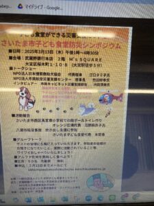 3/13(木)「さいたま市子ども食堂防災シンポジウム」に参加いたしました。 主催は、さいたま市子ども食堂ネットワークさんです。 各団体の取り組み、グループワークでも貴重なお話しが聞け、 最後は僭越ながら壇上で少しお話しを […]