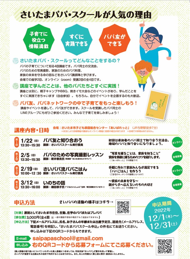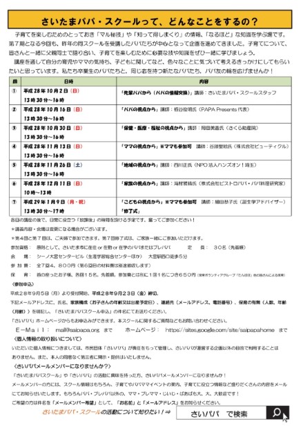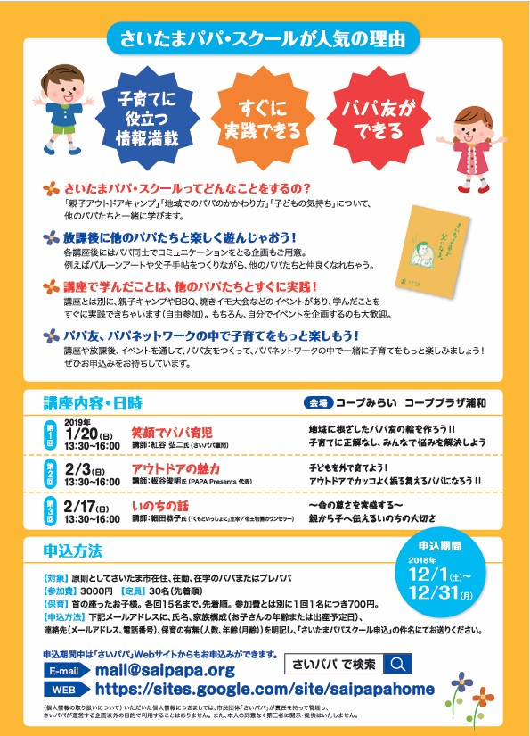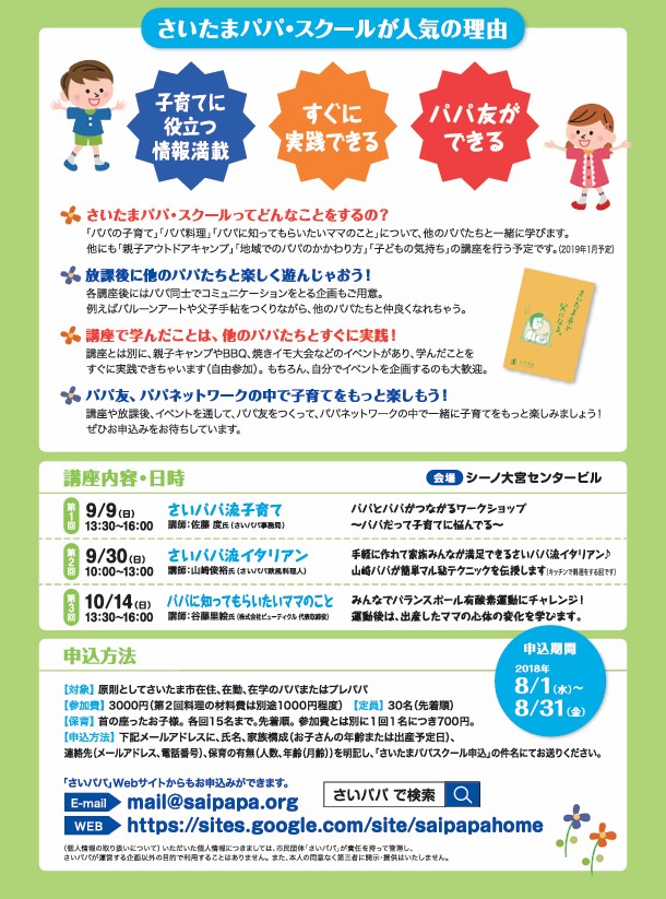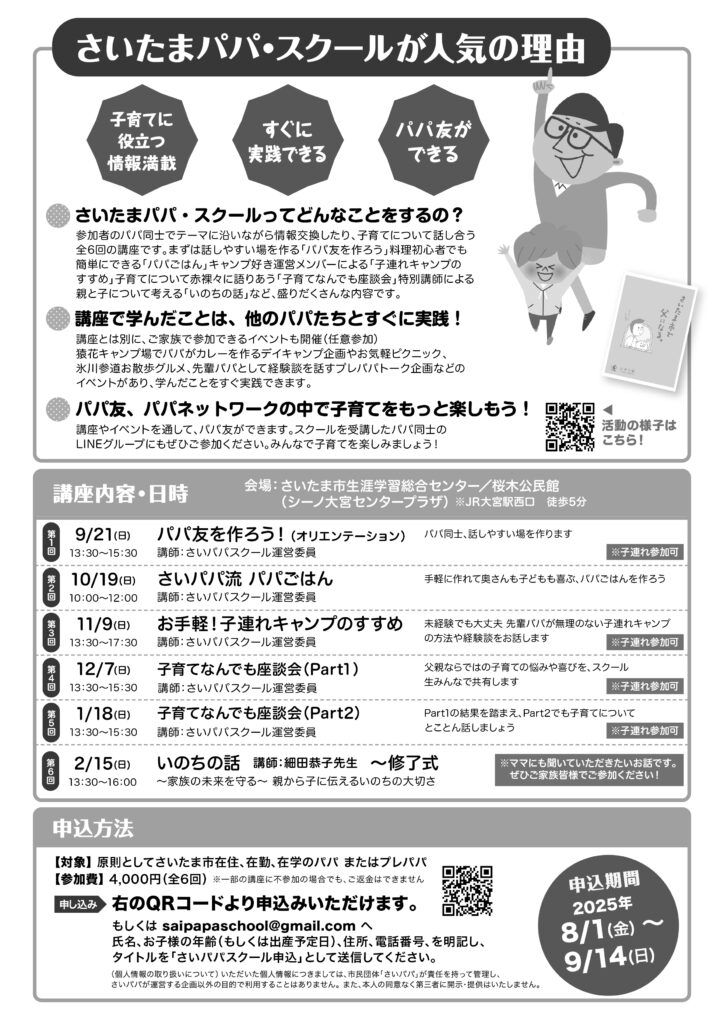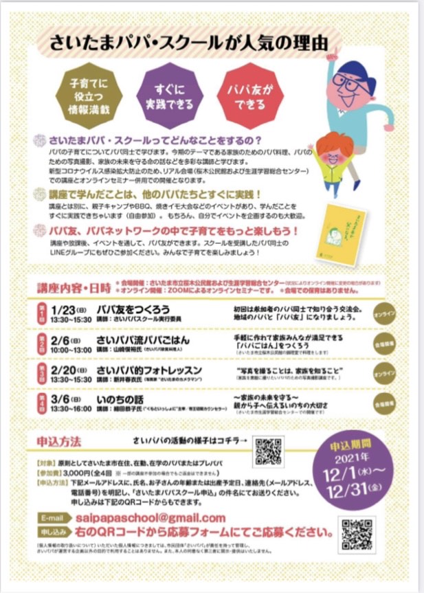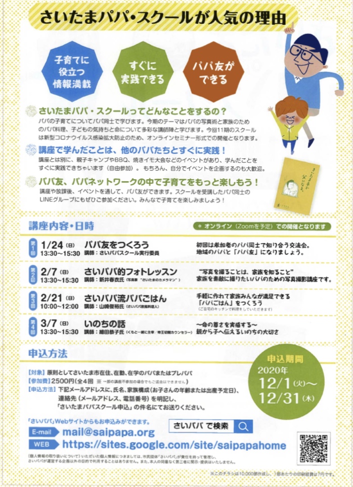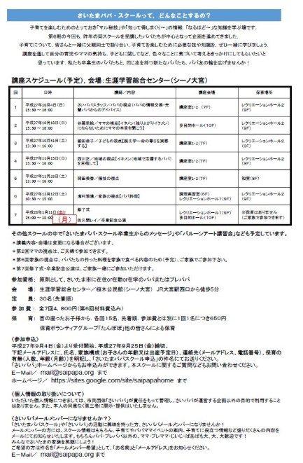 さいパパスクール 第16期 募集要項 ※9/14 締め切りました